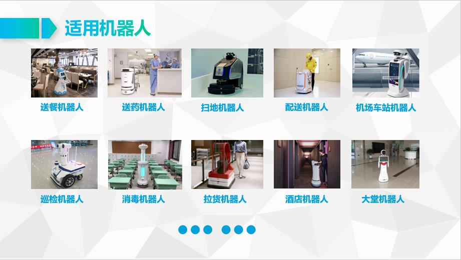 1、機器人替代人工越來越被廣泛應用,如掃地機器人、服務機器人、送餐機器人、巡檢機器人、送藥機器人、消毒機器人等;