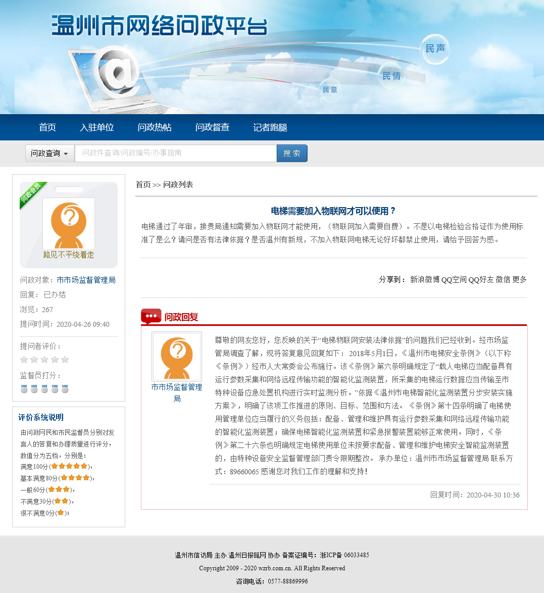 溫州市市場監督管理局回復: