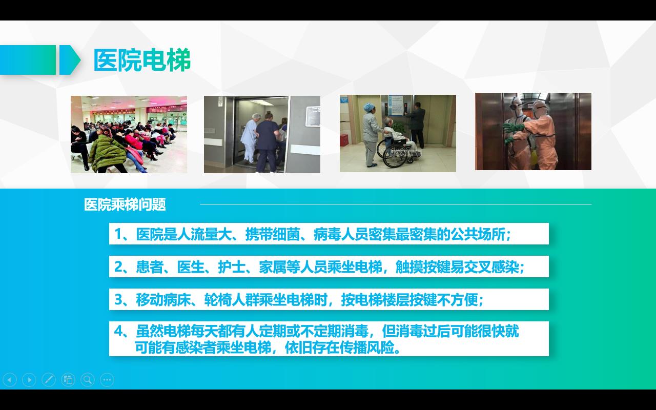 2、患者、醫生、護士、家屬等人員乘坐電梯,觸摸按鍵易交叉感染;
