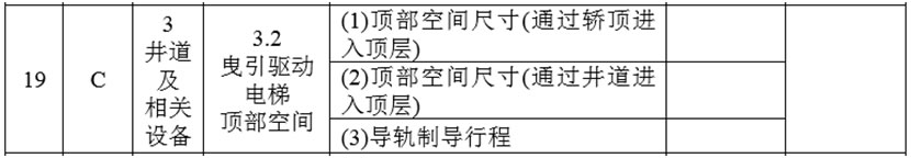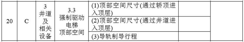 (2)將1.1(4)項的檢驗內容與要求調整為:“門鎖裝置、限速器、安全鉗、緩沖器、含有電子元件的安全電路(如果有)、可編程電子安全相關系統(如果有)、運載裝置上行超速保護裝置(如果有)、運載裝置意外移動保護裝置、驅動主機、控制柜、層門、玻璃轎門(如果有)、前置轎門(如果有)的型式試驗證書,以及限速器和漸進式安全鉗的調試證書;”