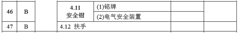 (22)增加4.12項,項目及類別為:“扶手 B”,檢驗內容與要求為:“供乘客抓握的扶手、立柱等裝置應當固定可靠”;