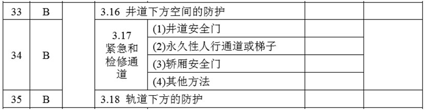 (16)增加3.17項,項目及類別為:“緊急和檢修通道 B”,檢驗內容與要求為: