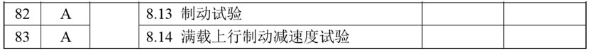 (27)增加8.14項,項目及類別為:“滿載上行制動減速度試驗 A”,檢驗內容與要求為:“裝載額定載重量的運載裝置以正常運行速度上行,運行至傾斜角為最小值區域時切斷電動機和制動器供電,制動過程中轎廂水平方向的平均減速度應當不大于0.25 gn,垂直方向的平均減速度應當不大于1.0 gn”;
