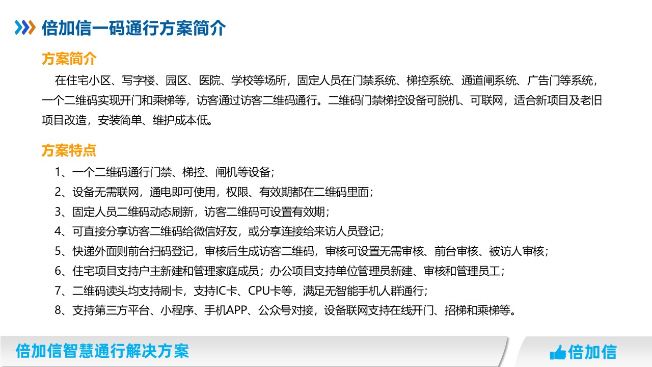 倍加信一碼通行解決方案 小程序二維碼,一個二維碼可在門禁、通道閘、電梯、廣告門等通行