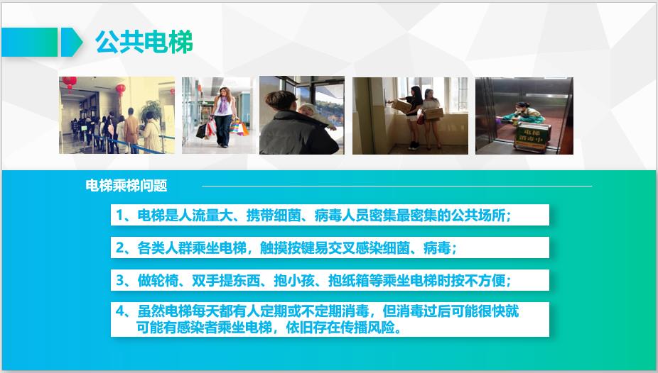 (1)電梯是人流量大、攜帶細(xì)菌、病毒人員密集最密集的公共場(chǎng)所;