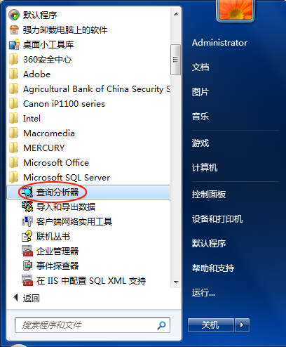 在查詢分析器中輸入